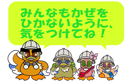 マスコットはカルガモ・カールズ、右からかるがも隊長、ほどにぃ、ルル、ガッちゃん