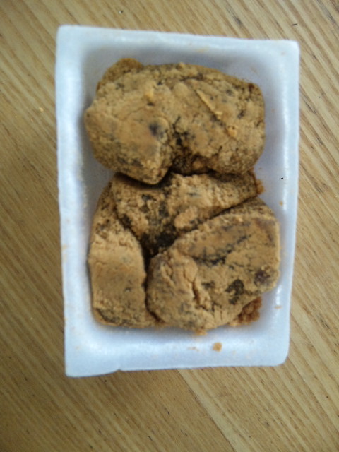 中身は黒糖にまみれたギュウヒ。胡桃もはいってる。